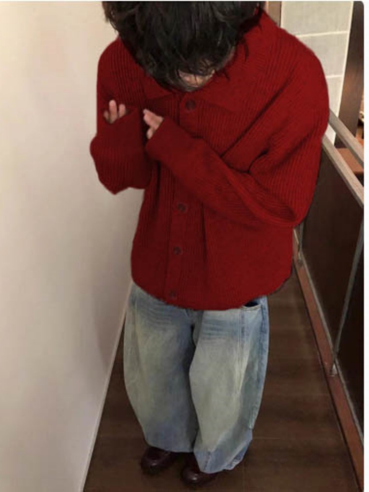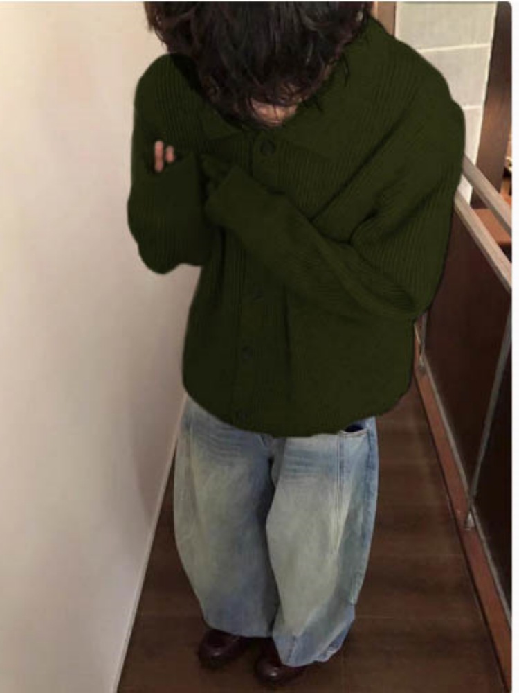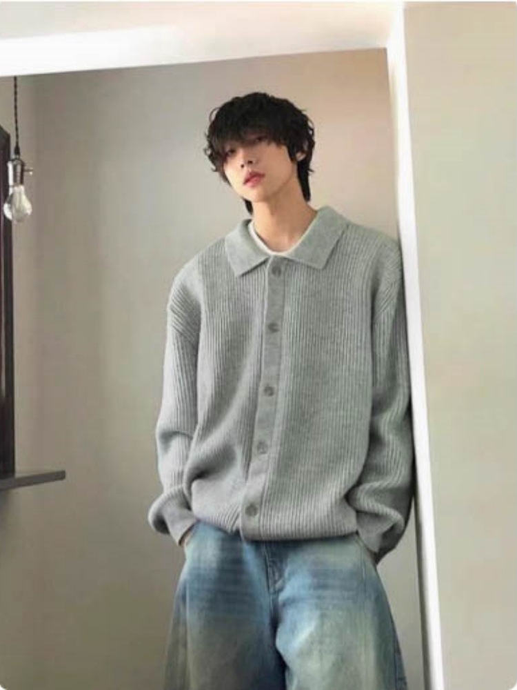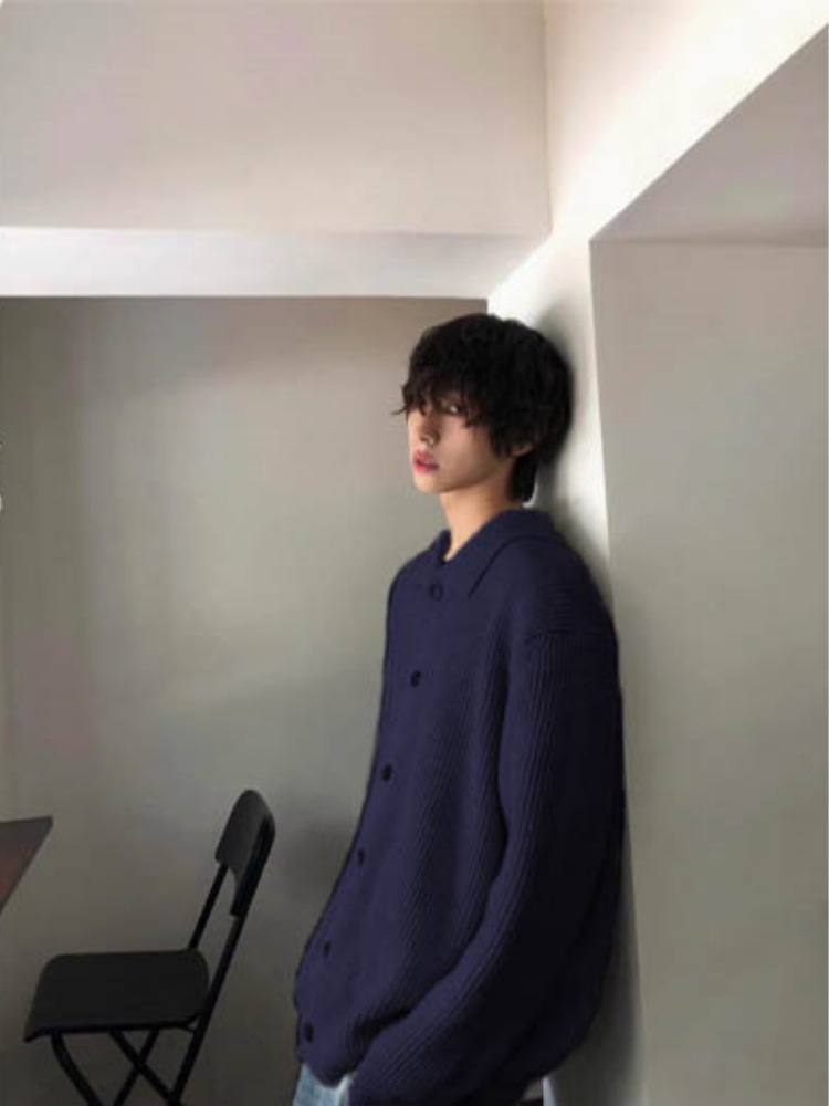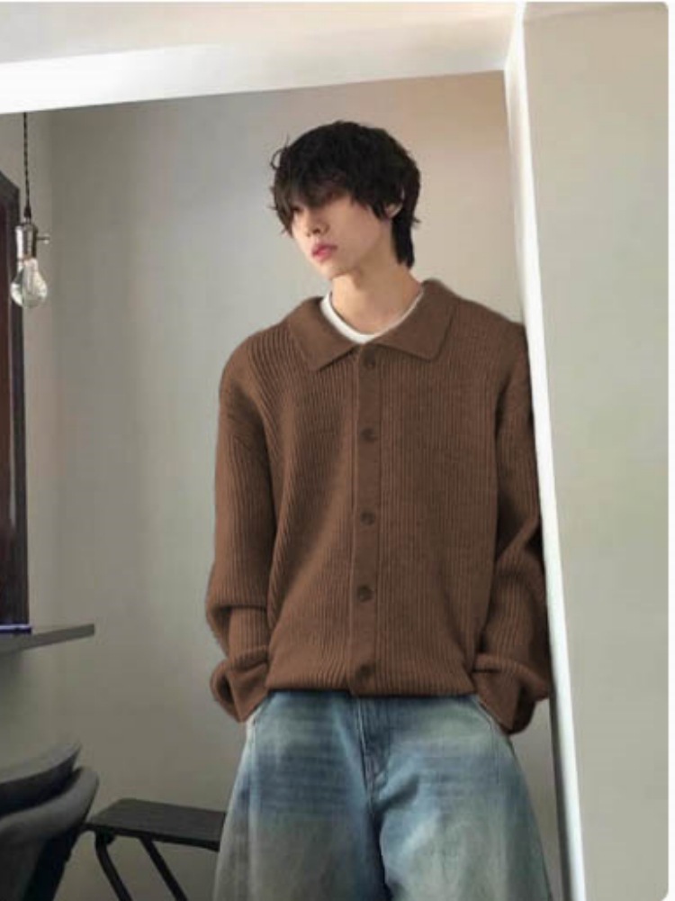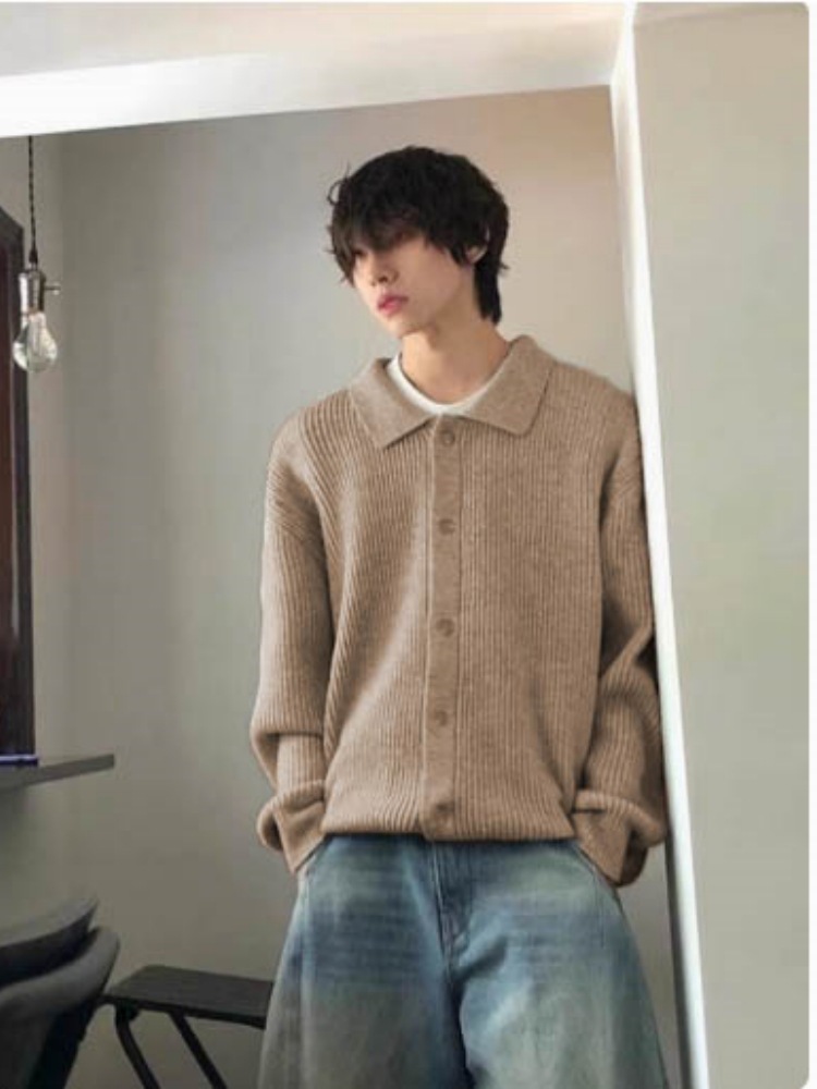 Autumn Winter Men's Wool Neck Knitted Cardigan Coat
